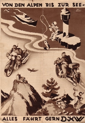 RT 2 ½, KM 200 Luxus, SB 200, SB 200 Luxus mit Anlasser, Sport 250, SB 350, SB 500 und SB 500 Luxus mit Anlasser „Von den Alpen bis zur See-alles fährt gern DKW“