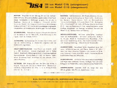 Mobile Preview: BSA 250ccm Prospekt 1954