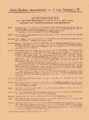 Mobile Preview: Beuker Motorrad 2,5 PS Prospekt 1920er Jahre