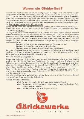 Göricke Motorrad und Fahrrad Programm ca. 1950