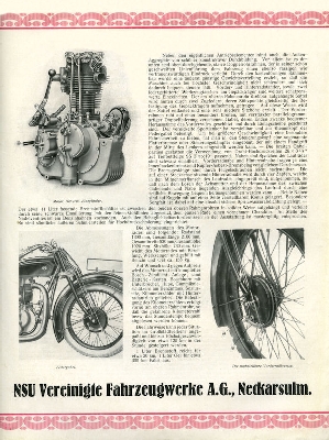 NSU 500 ccm Einzylinder Sport Modell Prospekt 1929