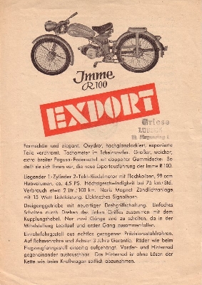 Mobile Preview: Imme R 100 Standard Prospekt ca. 1950