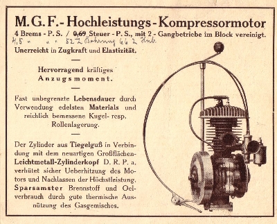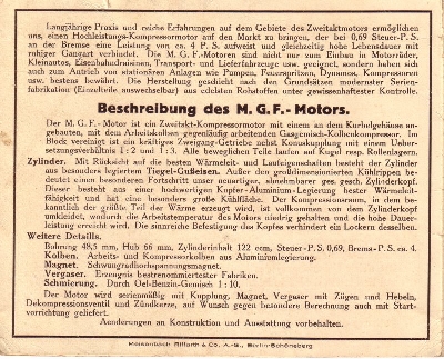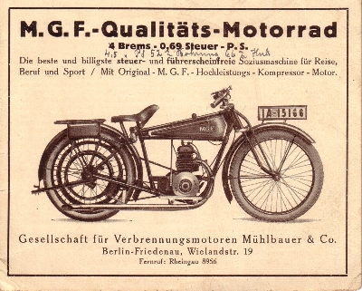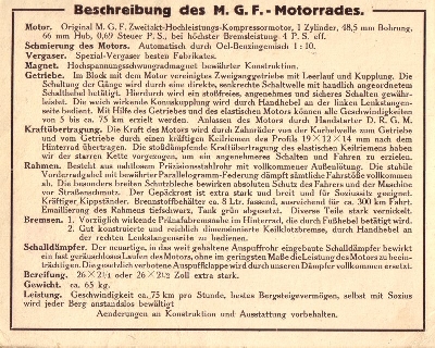 M.G.F. Motorrad Prospekt 1920er Jahre