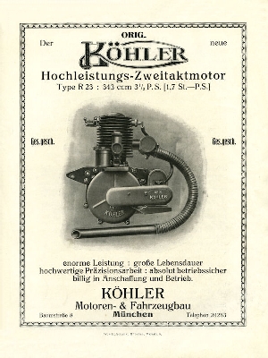 Köhler Motor 343 ccm Prospekt 1920er Jahre