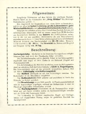 Mobile Preview: Köhler Motor 343 ccm Prospekt 1920er Jahre