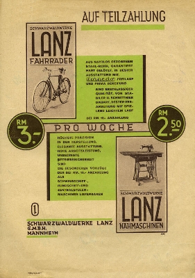 Lanz Fahrräder u. Nähmaschinen Prospekt 1928