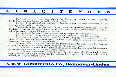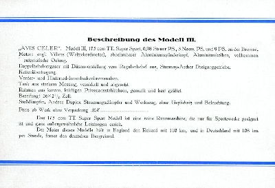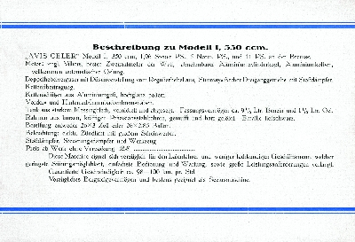Modell 1 350 ccm Villiers Motor, Modell 2 250 ccm Villiers Motor, Modell 3 175 ccm Villiers Motor und Modell 4 +5 500 ccm MAG Motor OHV und SV