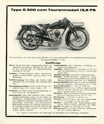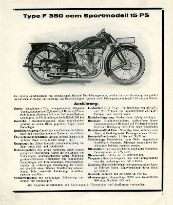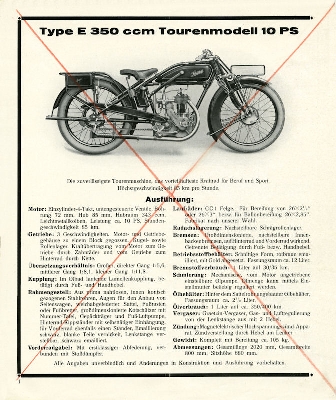 Typ E 350 ccm Tourenmodell 10 PS, Typ F 350 ccm Sportmodell 15 PS und Typ G 500 ccm Tourenmodell 13,5 PS