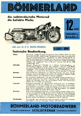 Böhmerland 600 ccm OHV Prospekt 1937