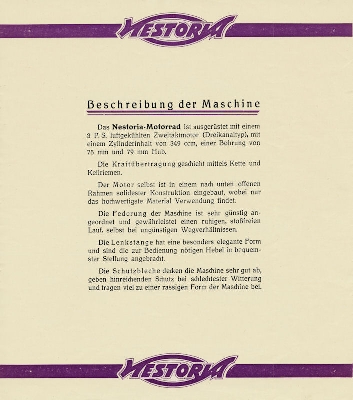 Nestoria 349 ccm Prospekt ca. 1925