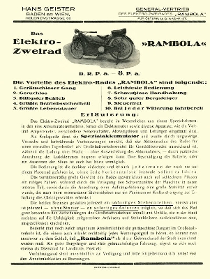 Rambola Elektro-Zweirad Prospekt 1920er Jahre