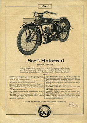 Sar Modell C 200 ccm Prospekt 1932