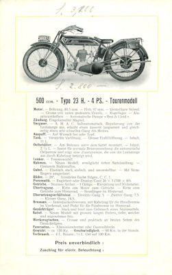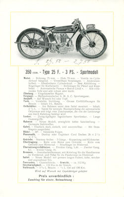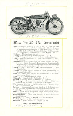 8 Seiten pages 23 x 14 cm 350 ccm Type 25 E-3 PS Tourenmodell, 350 ccm Type 25 F-3 PS Sportmodell, 500 ccm Type 23 H-4 PS Tourenmodell und 500 ccm Type 23 K-5 PS Supersportmodell Privatsammlung, kein Verkauf!!