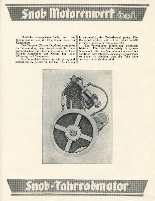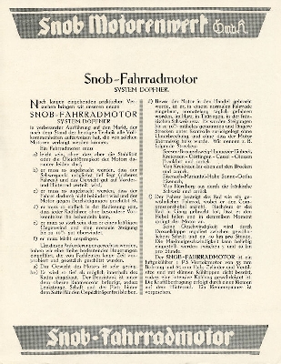 Snob 1 PS Fahrrad-Motor Prospekt 1921