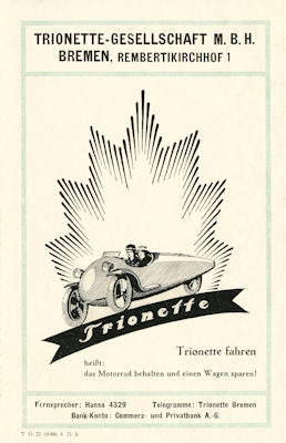 Trionette Dreirad Prospekt 1923