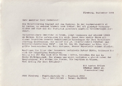 Mobile Preview: Zweirad Union Pressemappe 9.1964