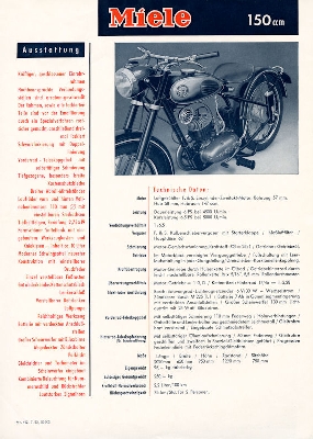 Preview: Miele 150 ccm Motorrad Prospekt 7.1953