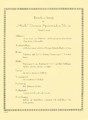 Miele Damen Sportrad Prospekt 1928