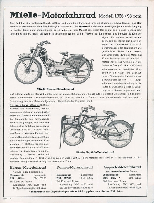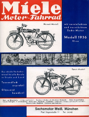 Mobile Preview: Miele Motorfahrrad Prospekt Modell 1936