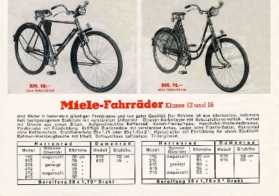 Mobile Preview: Miele Fahrrad Prospekt 1938