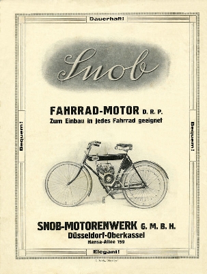 Snob 1,54 PS Fahrrad-Motor Prospekt 1922
