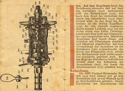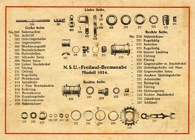 NSU Freilauf-Bremsnabe Prospekt 1924