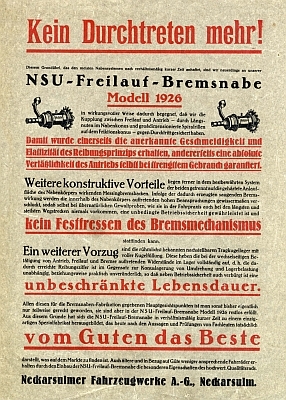 NSU Freilauf-Bremsnabe Prospekt 1926