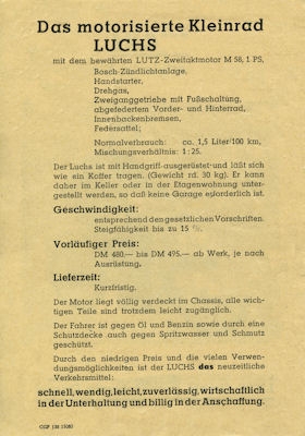 Zeitschrift für Industrie, Handel, Werkstatt und Fahrer, Berlin-Borsigwalde Roller Spatz (REX-Motor), Luchs (Lutz-Motor), Sarollette (Ilo-Motor) und Jeannette (125ccm Sachs-Motor) Leichte Gebrauchsspuren
