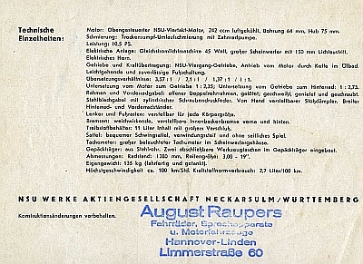 Mobile Preview: NSU 251 OSL Prospekt 1949
