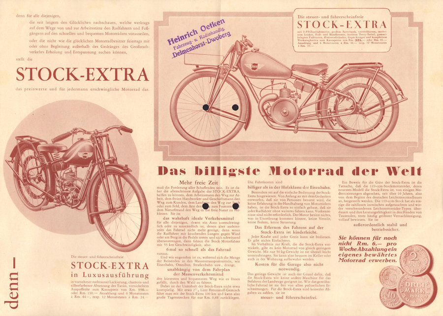 Preview: Stock Extra Leichtmotorrad Prospekt ca. 1930