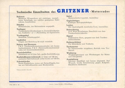 Mobile Preview: Gritzner 98 ccm Prospekt 1952