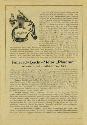 Mobile Preview: Phantom Viertakt Fahrrad Leicht Motor Prospekt 1923