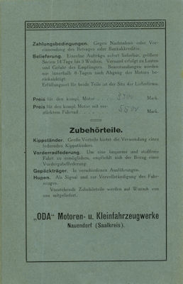 Mobile Preview: ODA Fahrrad Motor Prospekt ca. 1922