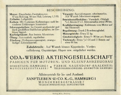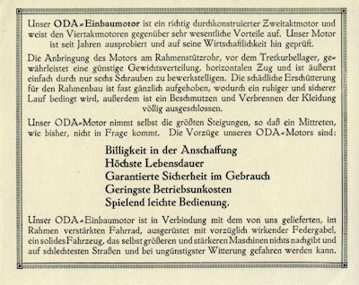 Mobile Preview: ODA Fahrrad Motor Prospekt ca. 1922