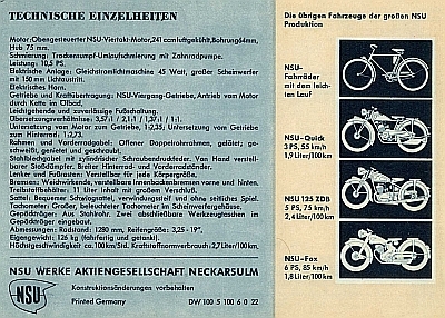 Mobile Preview: NSU 251 OSL Prospekt 6.1950