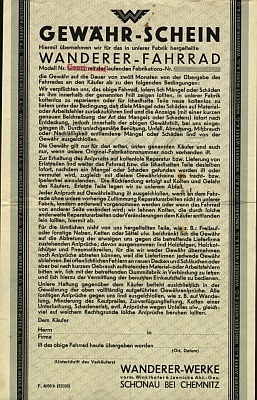 Wanderer Gewähr-Schein Fahrrad ab 1930