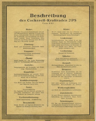 Cockerell 2 PS Kraftrad Prospekt ca. 1924
