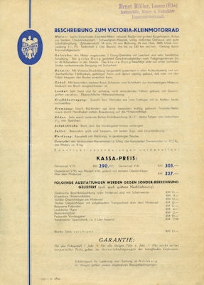 Mobile Preview: Victoria Kleinmotorrad Prospekt 1.1931