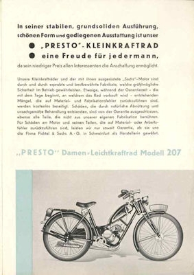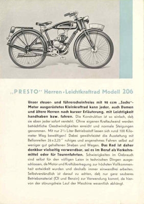 Presto Motor-Fahrrad Prospekt ca. 1934