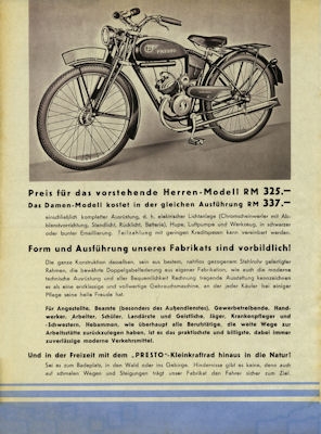 Preview: Presto Kleinkraftrad Prospekt 1936