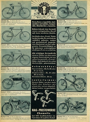Mobile Preview: Presto Fahrrad und Motorfahrrad Prospekt 1938
