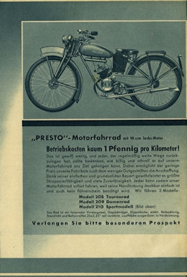 Mobile Preview: Presto Fahrrad und Motorrad Prospekt ca. 1936