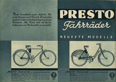 Presto Fahrrad und Motorrad Prospekt ca. 1936