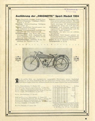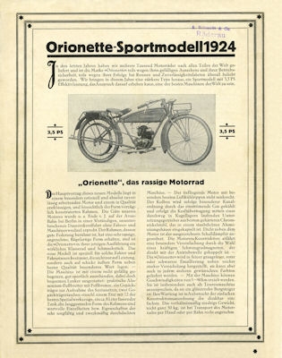 Mobile Preview: Orionette Sportmodell 3,5 PS Prospekt 1924