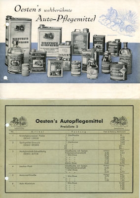 Oesten Auto-Pflegemittel Prospekt 1930er Jahre