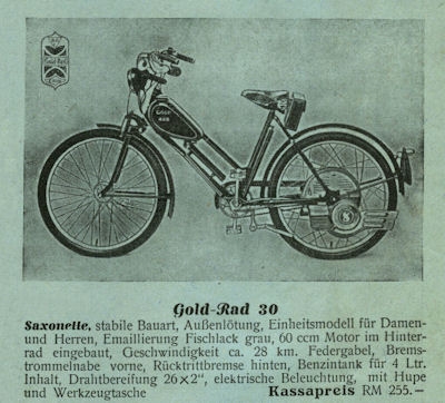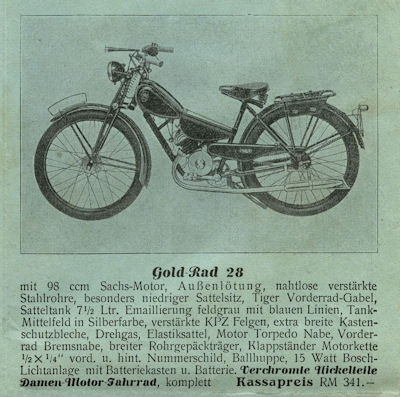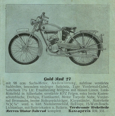 Mobile Preview: Goldrad Fahrrad und Motor-Fahrrad Prospekt 1939