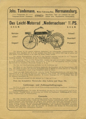 Niedersachsen Leichtmotorrad Prospekt 1920er Jahre