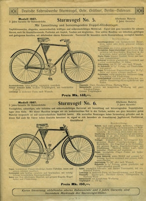 Mobile Preview: Sturmvogel Fahrrad Programm 1907