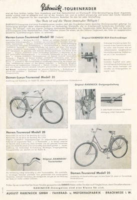 Preview: Rabeneick Touren Fahrrad Modell 30 Prospekt 5.1951