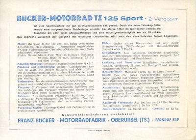 Preview: Bücker TZ 125 Sport Prospekt ca. 1950